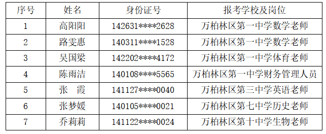 2025年萬柏林區部分中學校補充招聘政府購買服務教師擬錄用人員公示